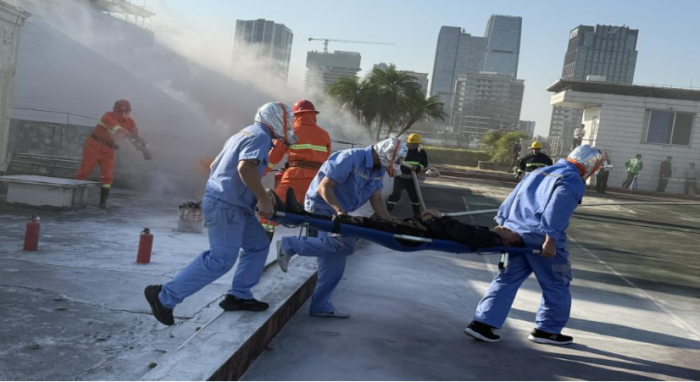 为提升应急实战能力,东方农工商利用全国消防宣传月等重要契机,在金钟大厦组织开展火灾应急疏散消防演练,邀请专业教官现场授课,详细讲解灭火器、消防栓等常用消防设备的操作规范与使用技巧,并实战操作火情侦察、人员疏散、现场警戒、伤员救护等关键环节,有效强化了公司全员和50余名租户代表的应急处置能力。