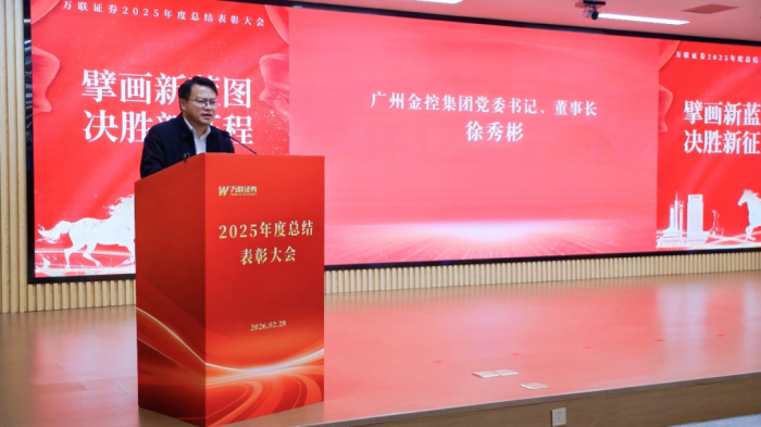2月28日,广州金控集团旗下万联证券隆重召开2025年度总结表彰大会,广州金控集团党委书记、董事长徐秀彬出席会议并作讲话。万联证券党委书记、董事长王达围绕《擘画新蓝图 决胜新征程 奋力谱写万联证券高质量发展新篇章》主题作讲话,党委副书记、总裁张毅峰代表经营班子作工作报告,党委副书记梁伟健主持会议。