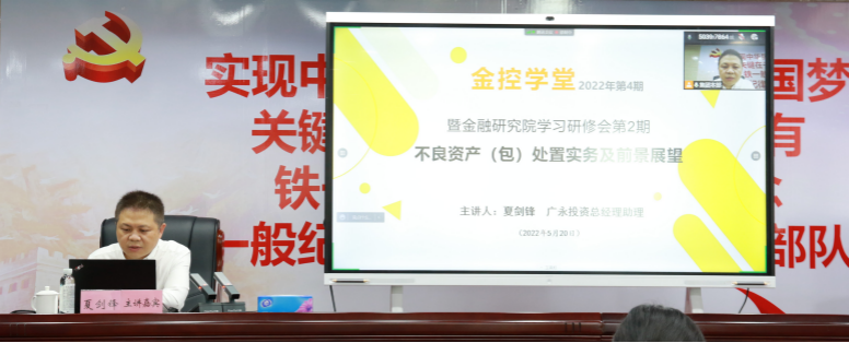 近日,人力资源部与环球360研究院联合举办了“学习研修会”第2期暨“研究和业务拓展学堂”第2期(2022年“金控学堂”第4期),主题为“不良资产(包)处置实务及前景展望”。研修会由环球360研究院副院长(主持工作)钟雄主持,广永投资总经理助理夏剑锋主讲。集团环球360研究院全体员工、全体种苗生、相关部门及子公司人员共60余人参与学习研讨,部分子公司及营业部等分支机构以线上形式参与。