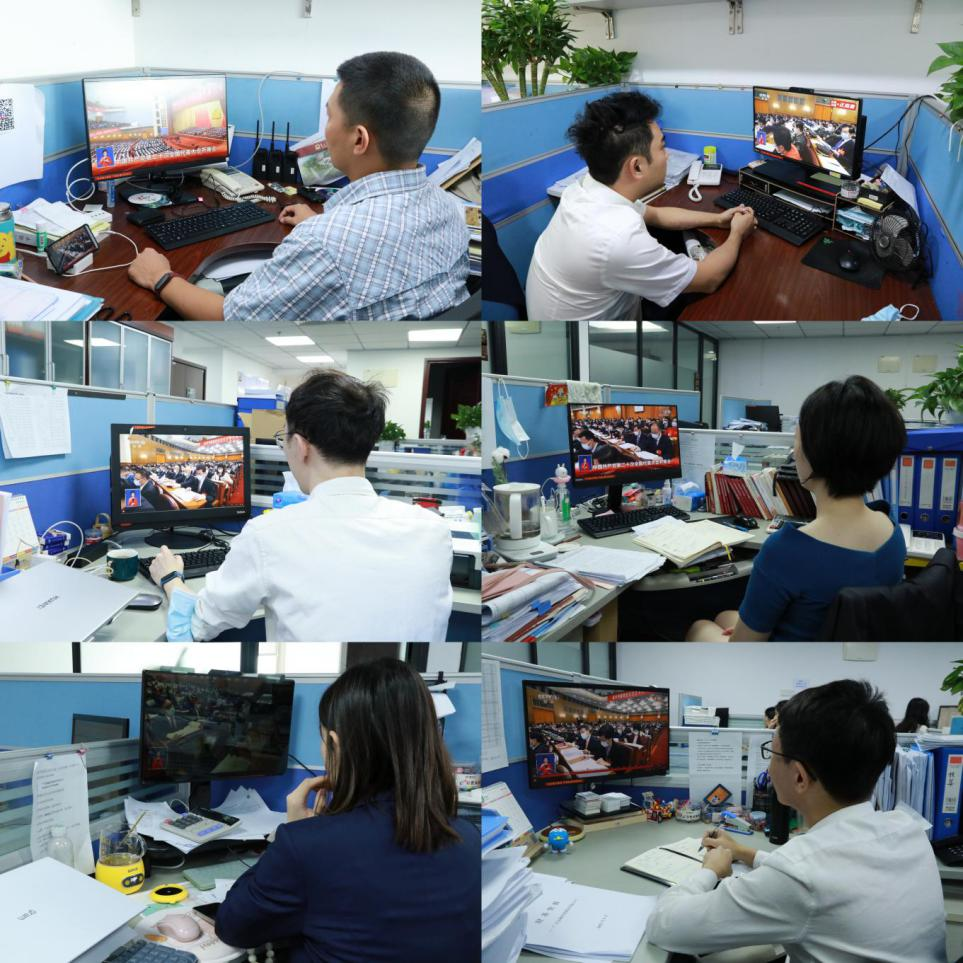 广州金控员工在工位上同步收听收看习近平总书记在中国共产党第二十次全国代表大会上的报告