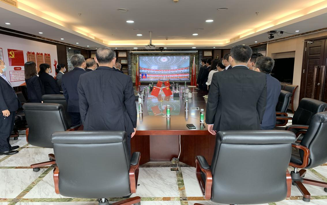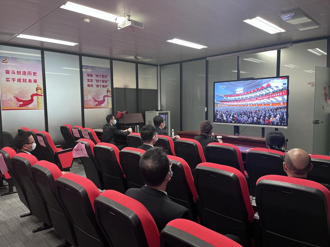 广州金控集团党委高度重视,把组织收听收看习近平总书记在中国共产党第二十次全国代表大会上的报告作为重要政治任务,确保组织到位、保障到位、覆盖到位。集团党委主要负责同志和本部中层以上干部在集团大会议室现场集中收听收看。按照集团党委统一部署,集团本部及12家下属企业全体员工近2000人在公司会议室集中或在各自工位上同步收听收看了报告的现场直播。