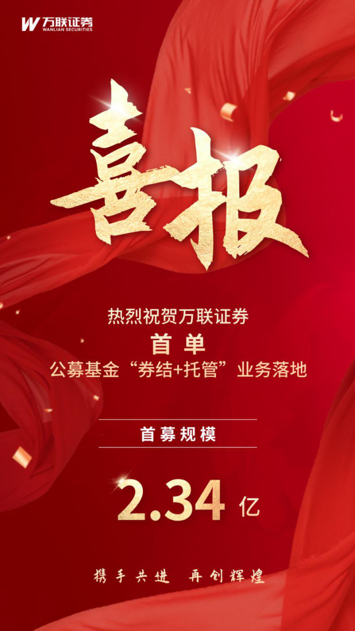 近日,广州金控集团旗下万联证券作为主销机构、券结机构及托管人的首只公募基金成功发行。该基金首发4天募集破亿,最终以2.34亿元完成首发募集,创公司固收+策略公募基金首发销量最快破亿纪录与首发销量纪录,充分彰显万联证券在基金销售、业务协同及托管服务领域的综合实力。此次突破是公司机构业务发展的里程碑,对深化与公募基金全方位合作具有深远意义。