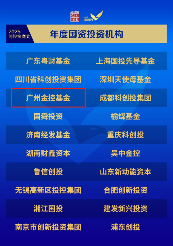近日,由《证券时报》主办的“2025创投金鹰奖暨创业企业新苗奖”评选揭晓,广州金控基金管理有限公司前瞻性的投资布局和优秀的业绩表现再次获得市场的认可,蝉联“年度国资投资机构”殊荣。