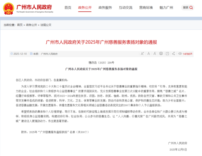 图片:万联证券获广州市人民政府慈善服务通报表扬